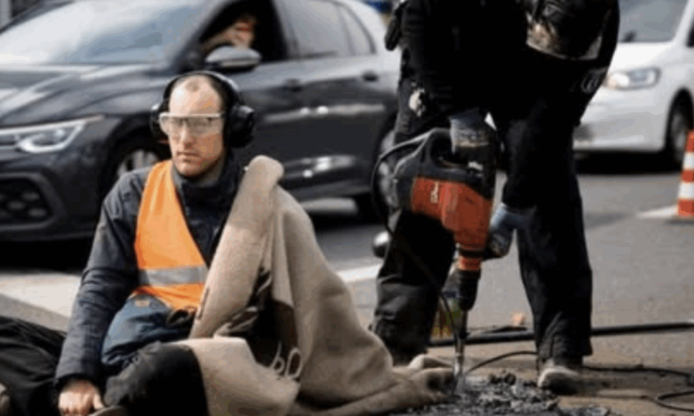 Bekijk: Klimaatactivisten in paniek omdat hun handen vastzitten in cement
