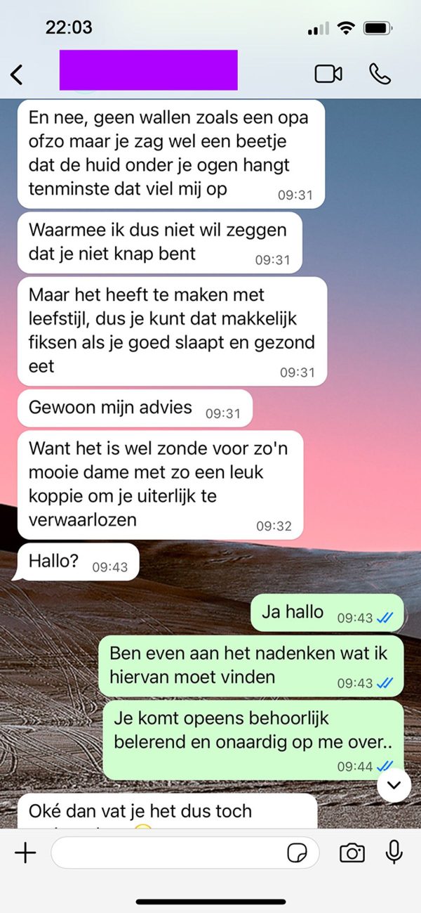 Wat het extra ongemakkelijk maakte, was de manier waarop hij zijn mening naar haar toe bracht. In plaats van een open gesprek te voeren, gaf hij ongevraagd zijn “kennis” over gezondheid en welzijn, alsof hij het allemaal beter wist. Ze voelde zich niet alleen oncomfortabel, maar ook een beetje belachelijk gemaakt, zoals hij haar leven met één gesprek wilde verbeteren.